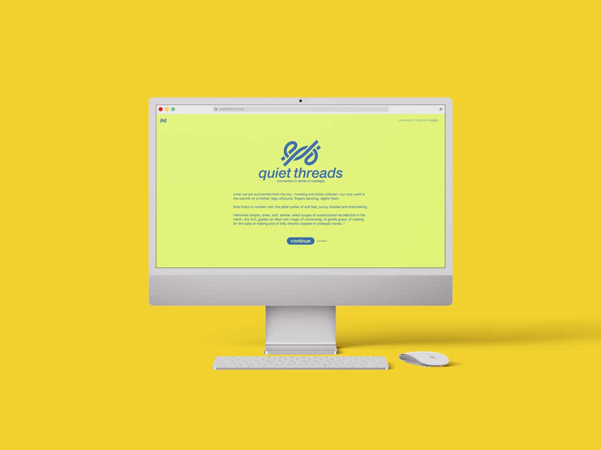 The Quiet Threads logo mark depicts interlocking threads, visually representing connection, care, and the quiet ways people are bound to one another. The form flows smoothly at an upward angle, reinforcing a sense of intimacy and hope. Paired with Helvetica Neue Bold Italic, the word mark is imbued energy, with the italicization introducing movement and warmth and preventing the identity from feeling stagnant.